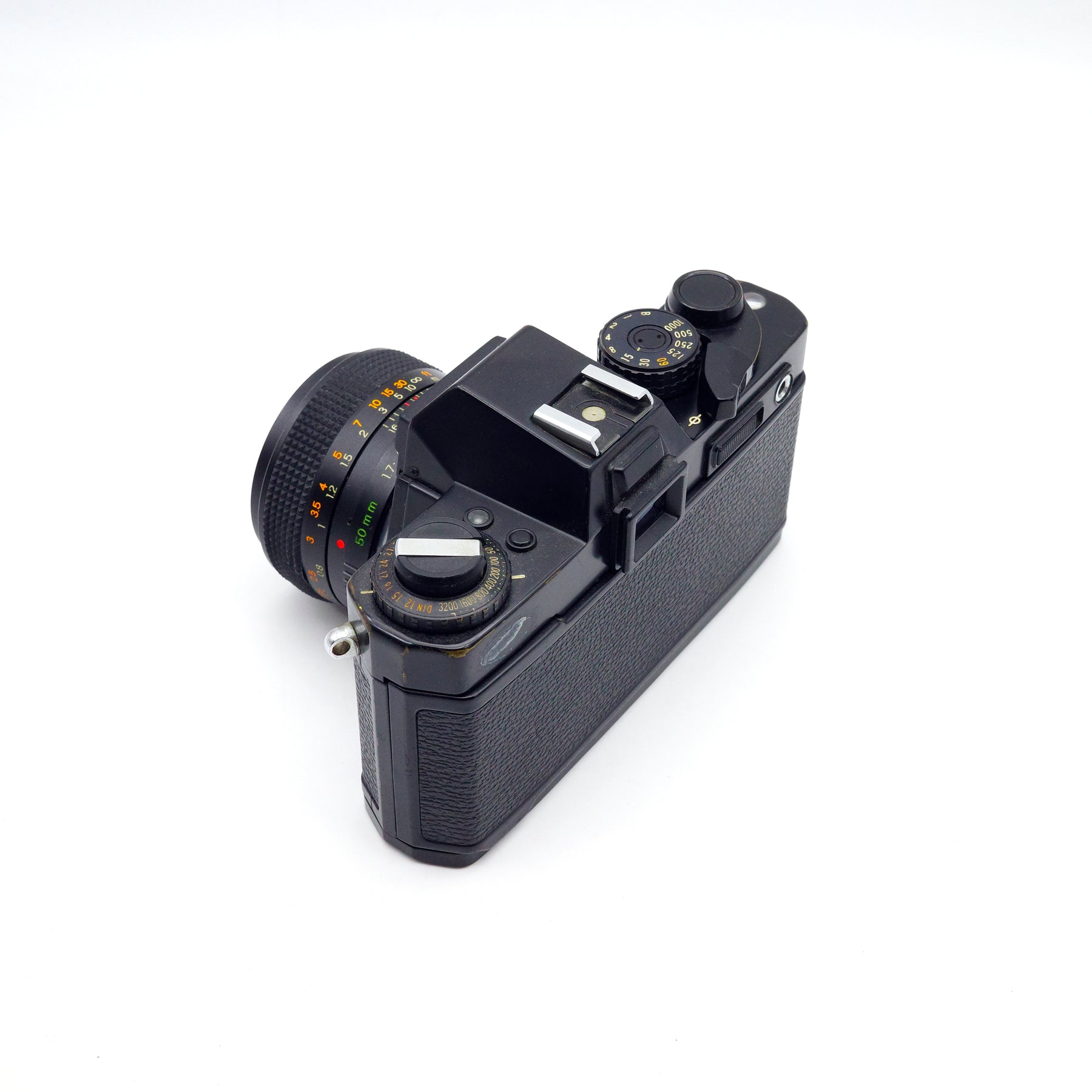 The FR featured an electronically-operated, horizontal-travel, cloth focal plane shutter with speeds from 1 - 1/1000 sec. It is a manual-focus SLR camera with manually set exposure controls, and aperture and shutter speeds are visible in the viewfinder. Instead of the normal mechanical shutter button, the FR was fitted with a 'Feather-Touch' electronic release. It was fitted with the Contax/Yashica bayonet lens mount, allowing the use of either Yashica or Carl Zeiss T* lenses. The camera was available with a power winder, and could also accept an available Contax/Yashica motor drive and infrared remote shutter release.