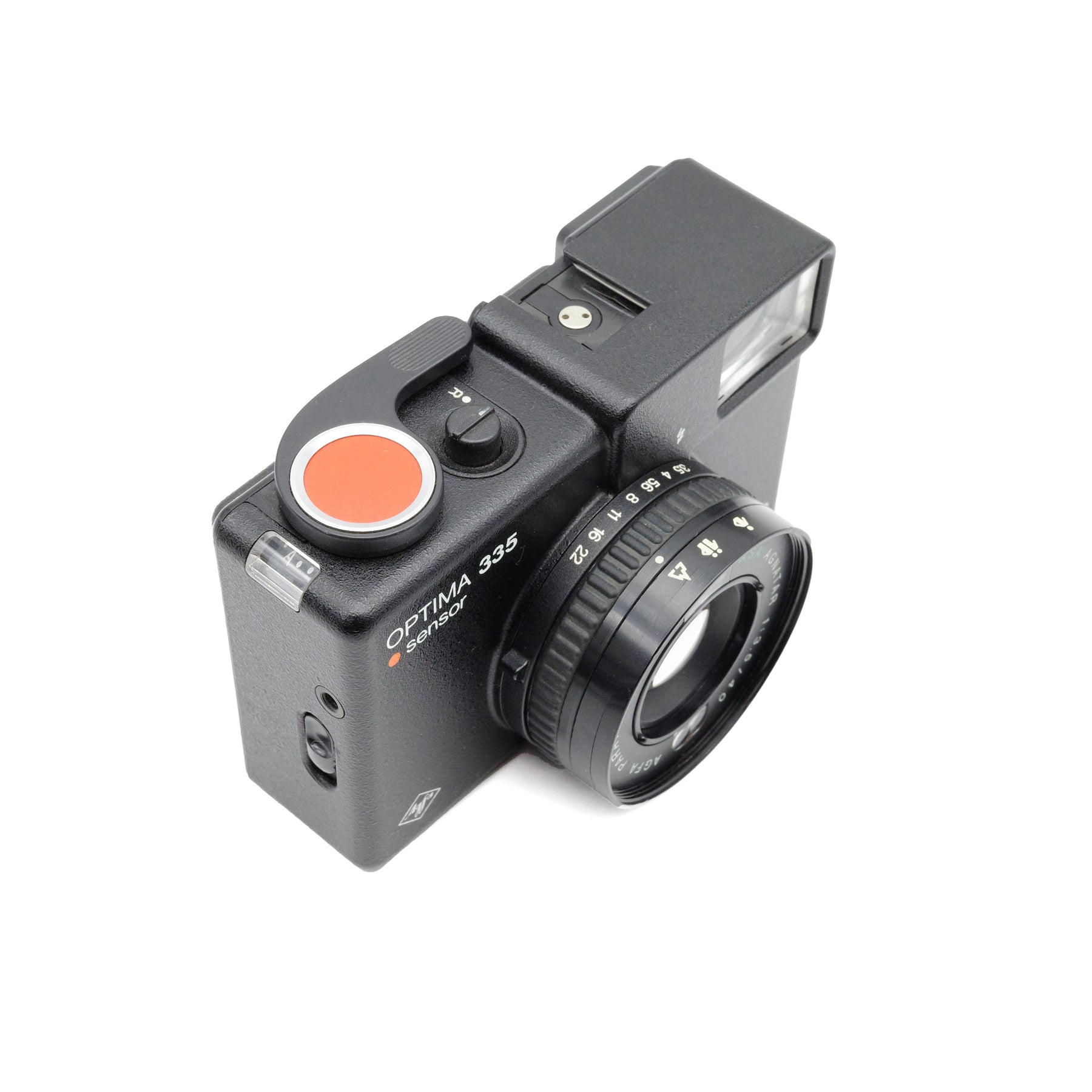 The Agfa Optima Sensor Electronic 335 is the base model of the range of Optima Sensor Electronic Series cameras introduced by Agfa in 1978s (not to be confused with the Agfa optima sensor range of 1969). The 335 is a small, rectangular 35mm viewfinder camera: smaller than the Olympus Trip 35, for example.