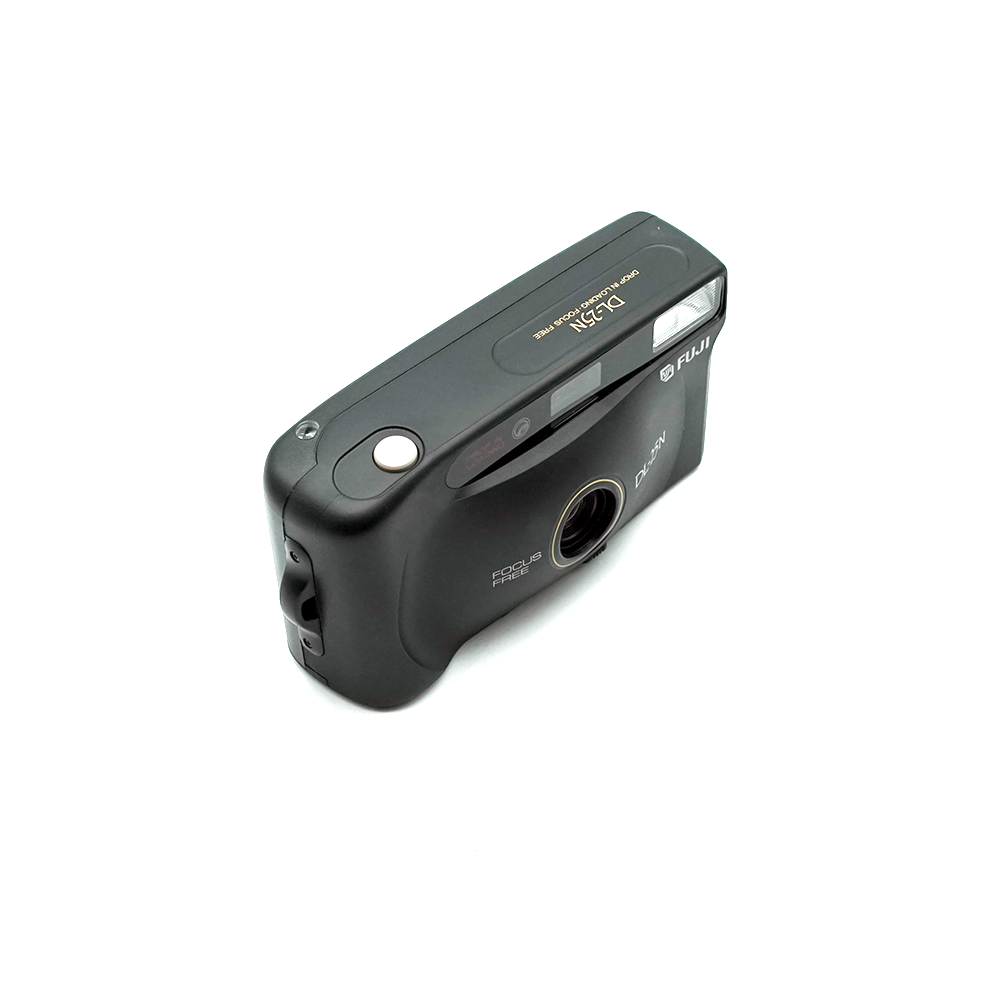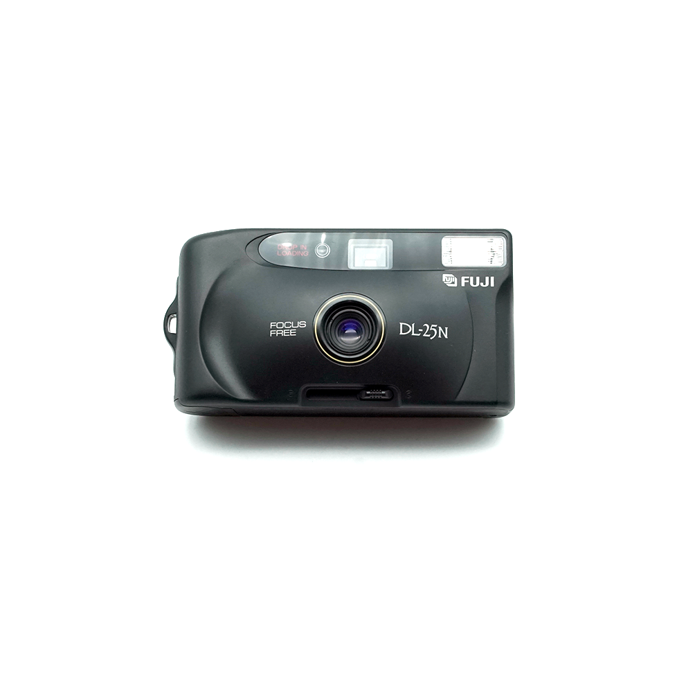 The DL-25 is a auto-exposure compact point and shoot 35mm film camera from Fuji. The fixed-focus lens is a 35mm Fujinon, which is protected by a retractable cover. The film transport features a drop-in loading design with a motor drive. There is a built-in flash. Runs on 2xAAA batteries.