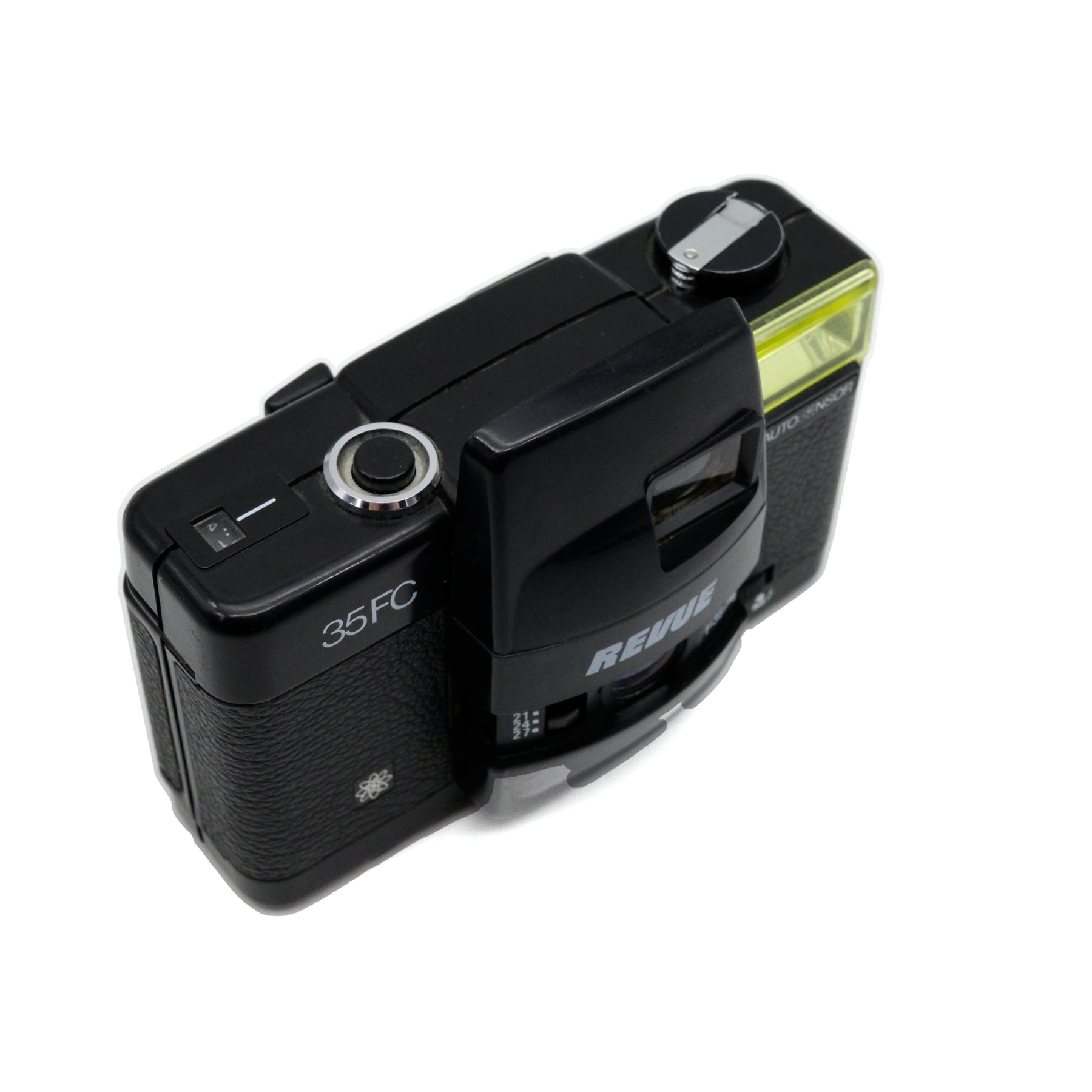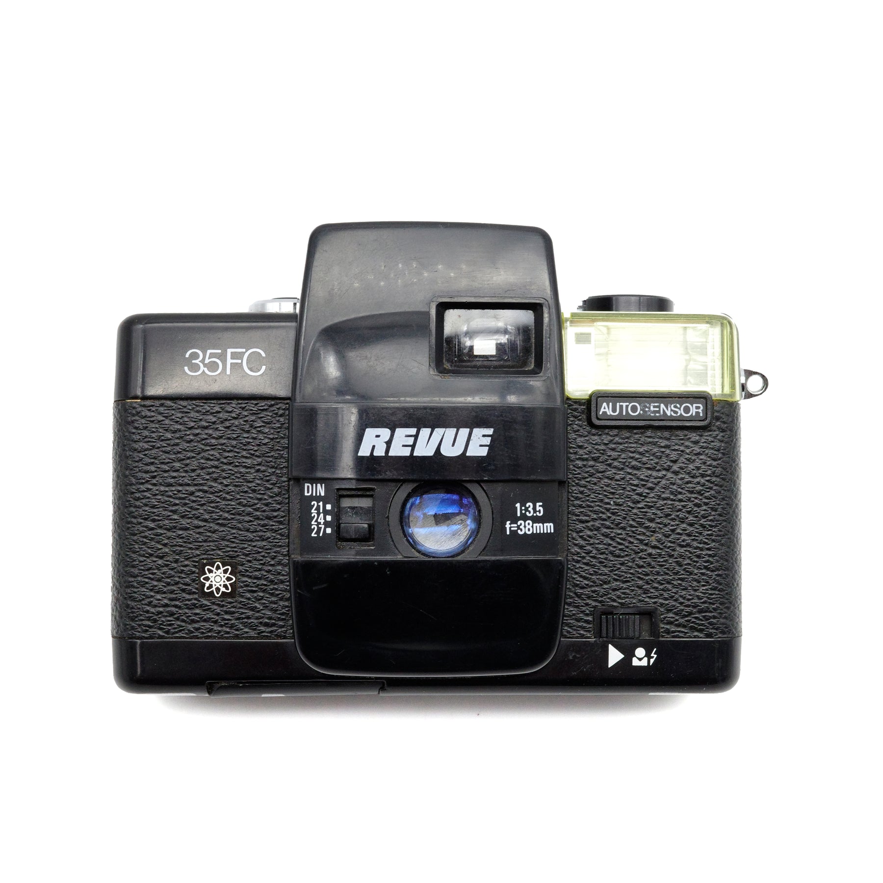 The Revue 35FC is a viewfinder camera. The 35mm camera was built by Haking in Asia and sold in Germany by Foto Quelle, a German photo mail order company. It was sold in at least four different color schemes.