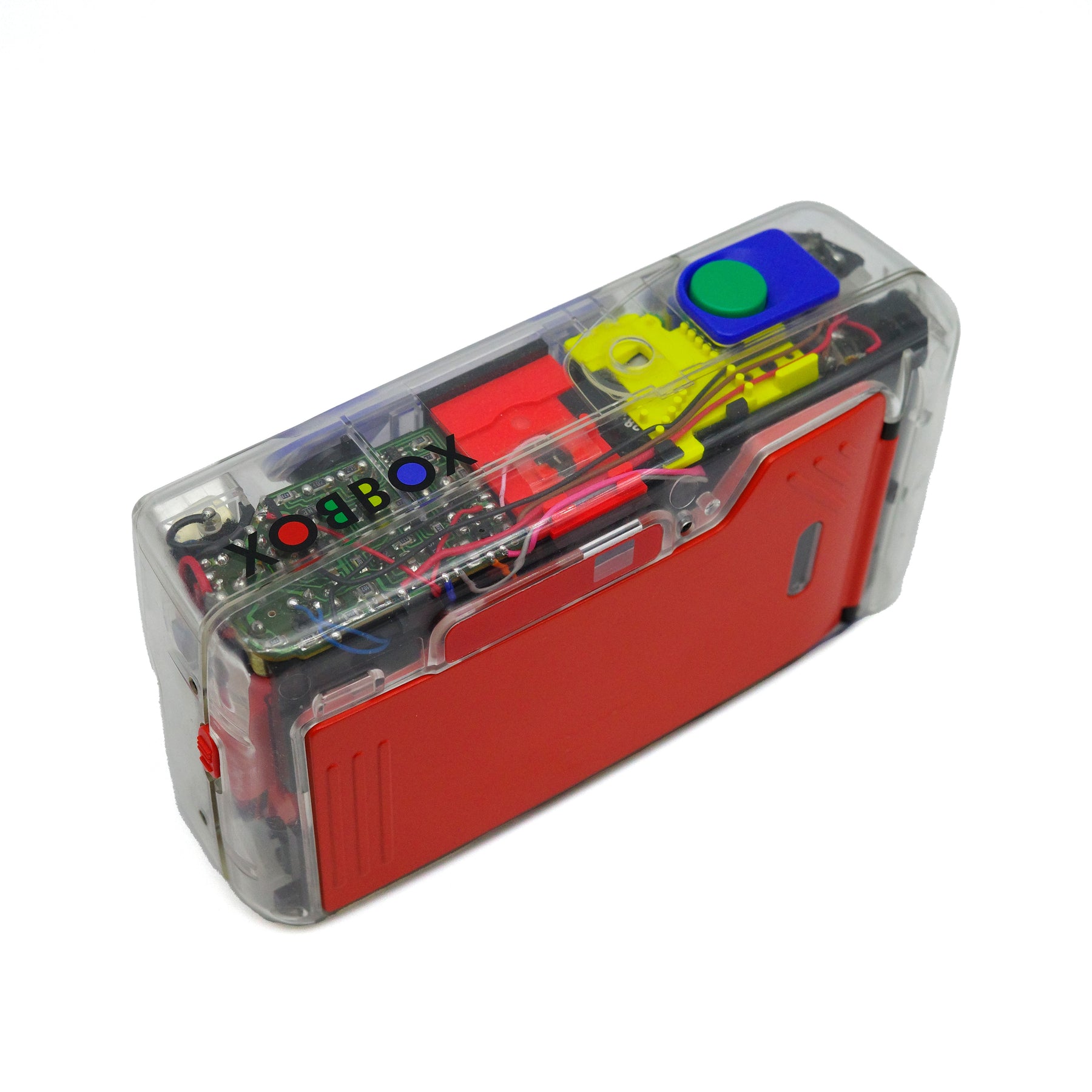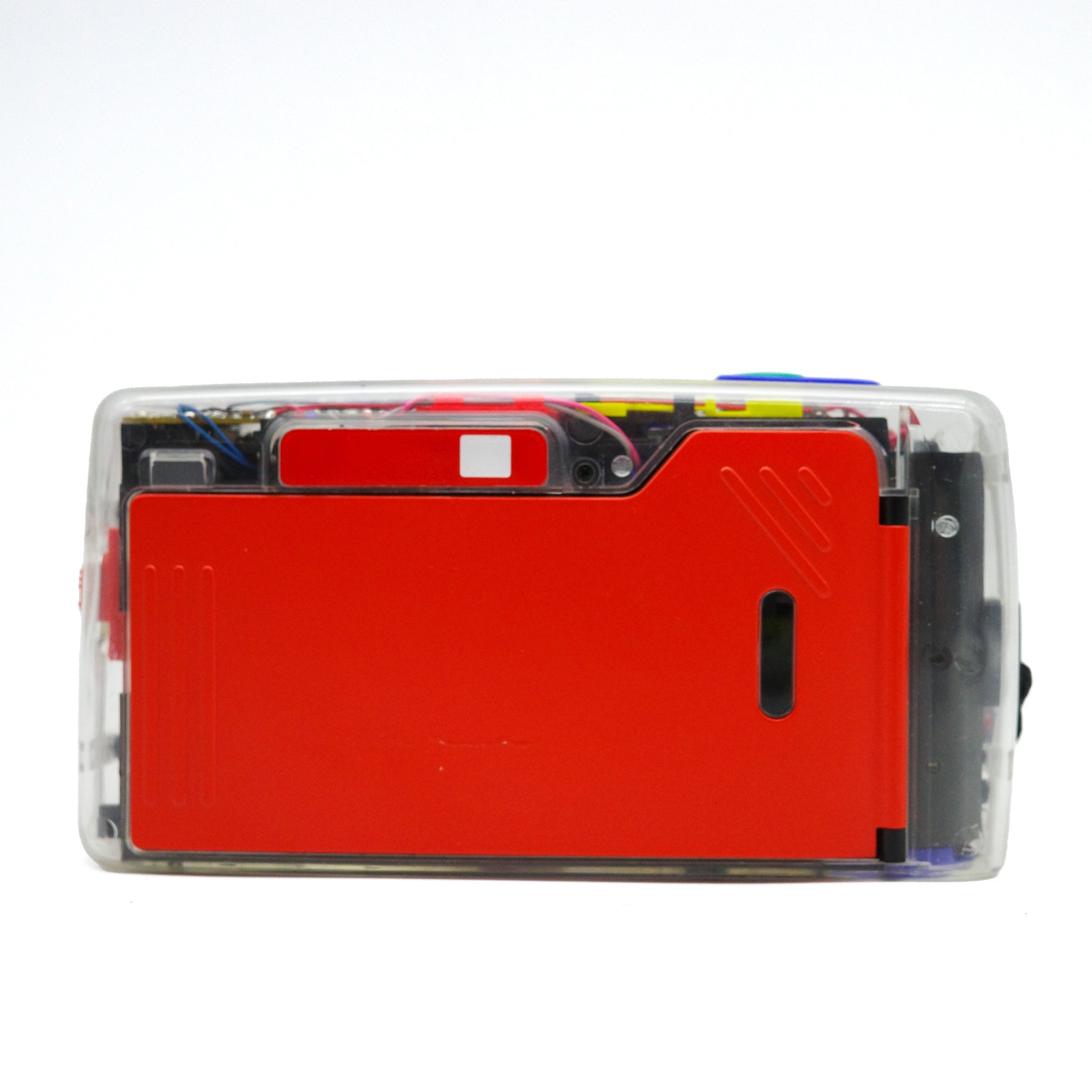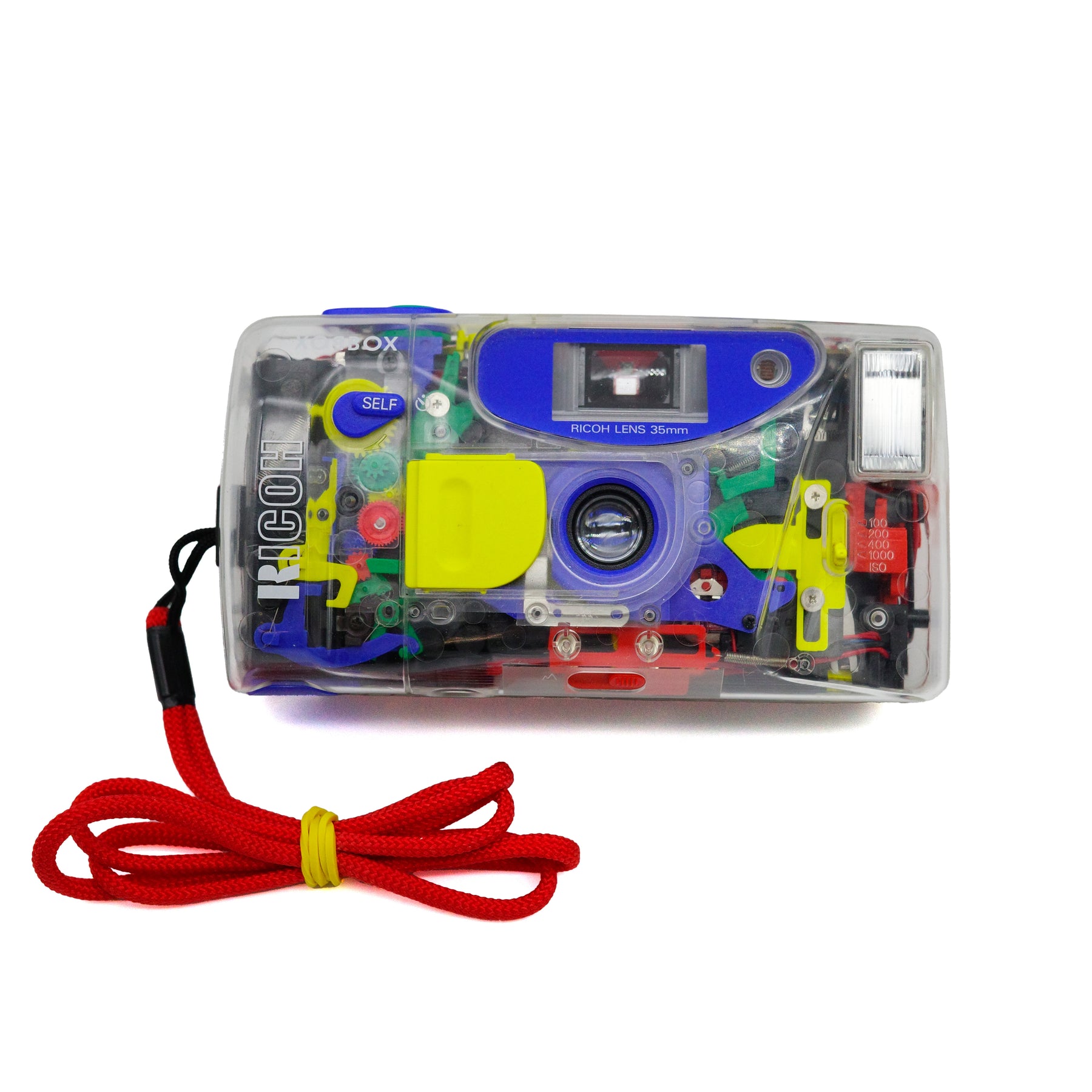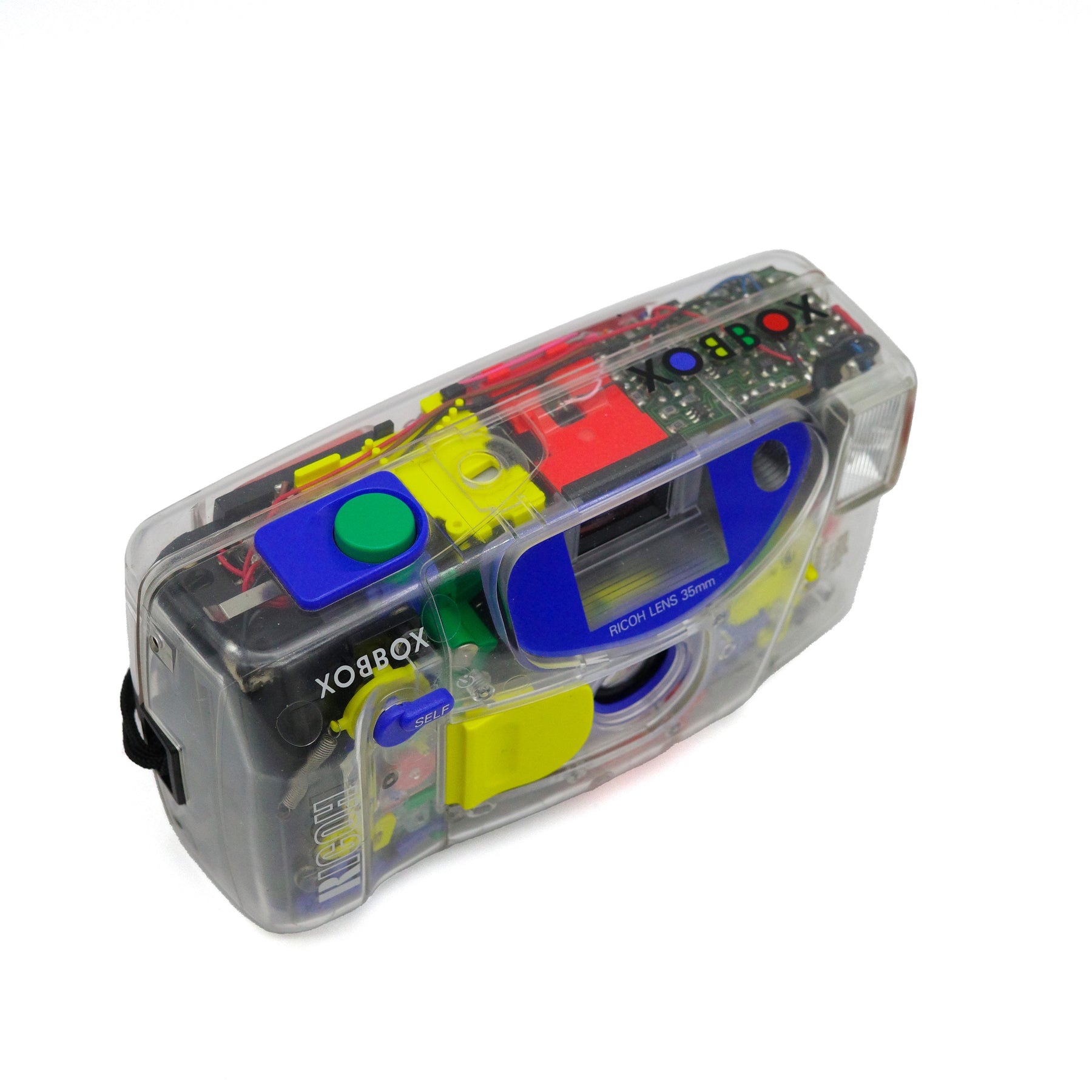 The model named LX-22S is a variant model featuring a transparent body shell and colorfully painted internal components, which was released a year later in 1993 and manufactured limited numbers. This see-through camera is also known as the XOBBOX. Although its body shell is transparent, it can take pictures; the film chamber itself is not see-through and is safely sealed from external light.
